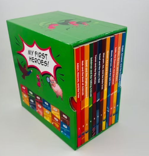 Introducing the ultimate heroic gift set for kids! This set includes My First Heroes book set, a collection of 12 paperback books featuring real-life heroes, each with a heroic trait. The set also includes activity guides to nurture each trait, access to coloring pages, and colorful fictional characters. The Four Week Hero Pack provides weekly character-building themes and paired Quranic stories, with coloring and activity pages, free audiobooks, and more. And finally, Audiobooks of My First Heroes: 12 Bedtime Stories from the Quran in CD format, with fun new Duas, sound effects, and teachable moments- for Kids, by Kids! Perfect for Ramadan, Summer Break, Classrooms, Homeschoolers, and beyond!